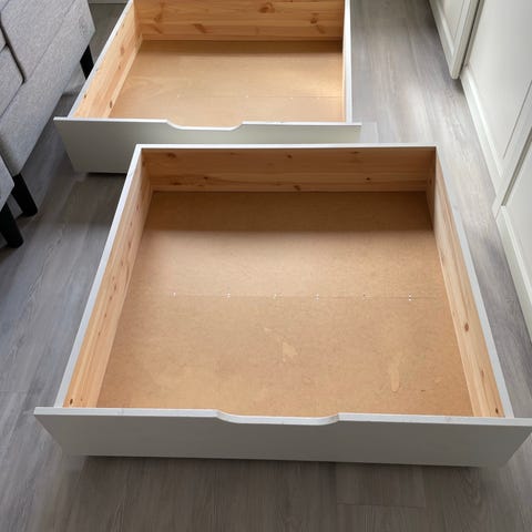 2 st vita förvaringslådor på hjul. Rullas smidigt under sängen och ger bra extra förvaringsyta.