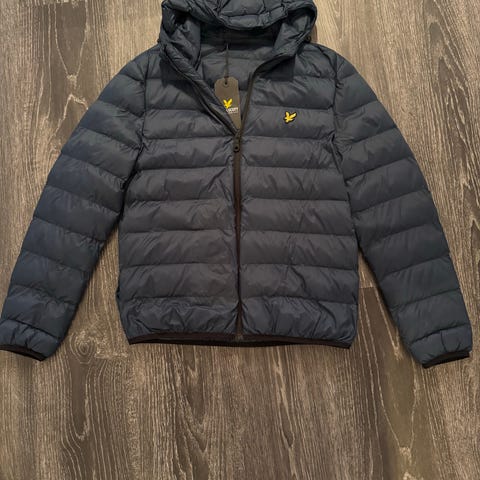 Lyle & Scott dunjacka för herr i storlek S. Jackan är blå och har vadderad dunfyllning. Modellen har huva, hel dragkedja framtill och sidofickor. Passar som ytterjacka i kallare väder.