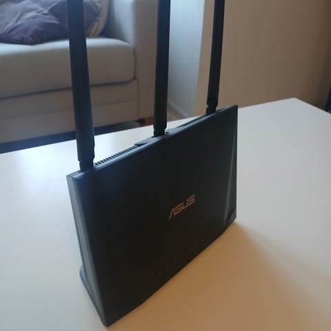 Asus RT-AC66U B1 trådlös router med gigabit dual-band AC1750. Routern har en 1 Gbit WAN-port och fyra 1 Gbit LAN-portar. Den är utrustad med tre externa dual-band-antenner och stödjer trådlösa standarder upp till 802.11ac. Enheten har 128 MB flashminne och 256 MB DDRIII RAM.