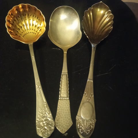 Skedarna är tillverkade under tidigt 1900-tal, troligen mellan 1900–1920. Mönstret är ett typiskt exempel på Jugendstilen (Art Nouveau), som inspirerades av naturens former där fjärilar var ett mycket populärt motiv. Att de bär den gamla kvalitetsstämpeln med de två cirklarna gör dem till ett fint stycke svensk kulturhistoria från en tid då hantverket stod i fokus.