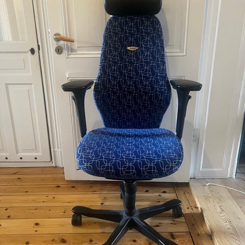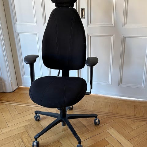 Den är känd som en ergonomisk kontorsstol utformad för aktivt sittande, ofta med en unik sitsform och en smal rygg för ökad rörlighet.