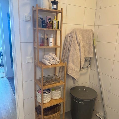 Passar i badrum med begränsat utrymme där man vill utnyttja höjden för extra förvaring.