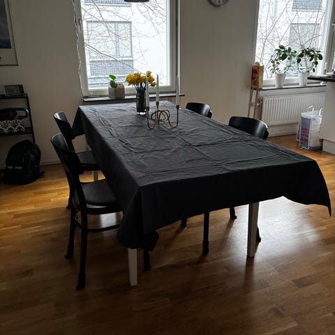 Litet matbord bortskänkes. Perfekt för mindre kök/yta. 3 små repor som endast syns om man tittar noga, de smälter in i bordets mönster.
