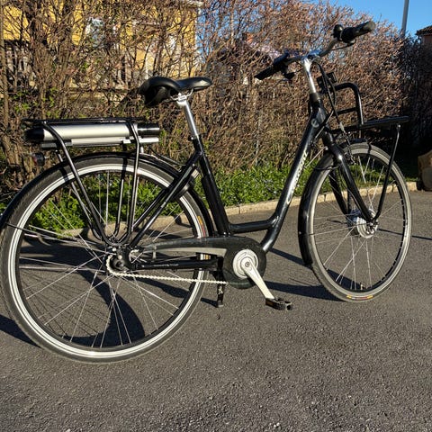 Crescent Elder elcykel, herrmodell med ramstorlek XL och 28" hjul. Cykeln har mittmonterad motor (navmotor) och stort batteri (418 Wh) på diagonalröret. 10 växlar, Shimano.