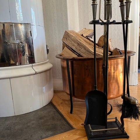 • Eldverktyg: Inkluderar borste, skyffel och eldgaffel med tillhörande ställ.
