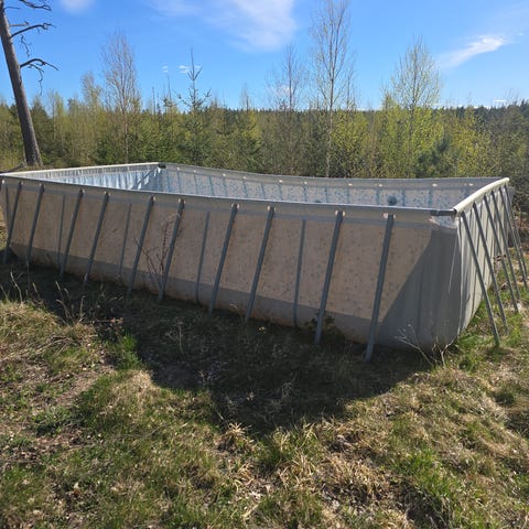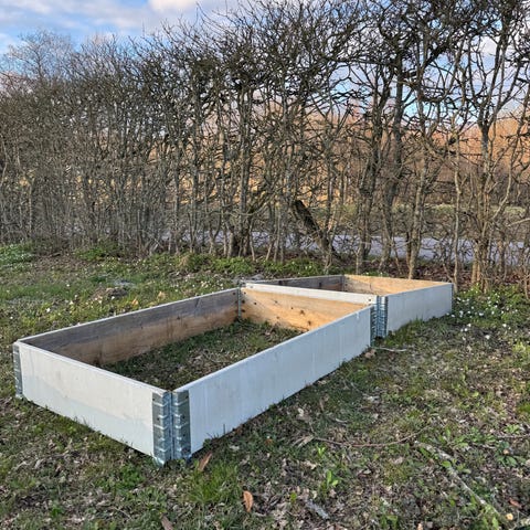 Du tar med egen låda, botten, tak och spännband.