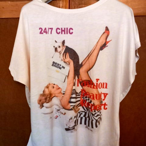 Karaktären på t-shirten är operasångerskan Bianca Castafiore, även känd som "Näktergalen från Milano", från Tintins äventyr. (Helt oanvänd, endast tvättad en gång för att fräschas upp)