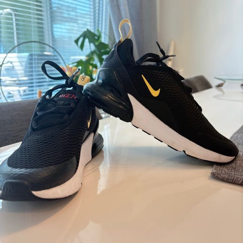 Nike Air Max 270 barnsneakers i svart med vit sula. Skostorlek EU 36 (US 4,5Y).