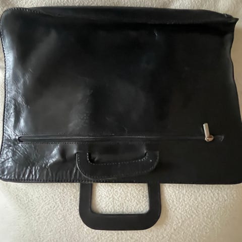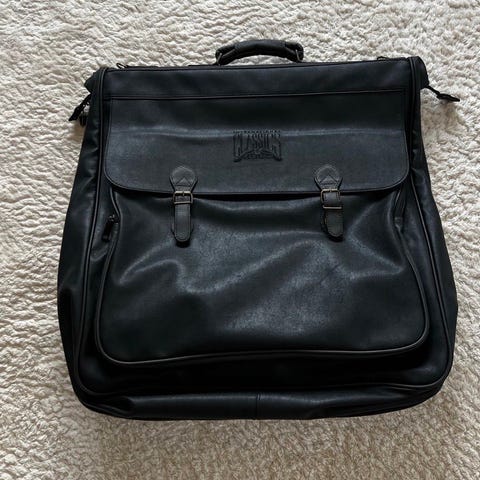 Väskan är utformad för transport och förvaring av kläder, exempelvis kostymer eller klänningar, och kan vikas ihop till portföljliknande format med bärhandtag upptill.