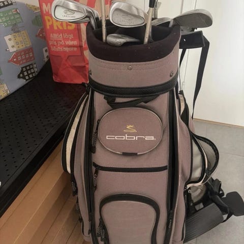 Säljer ett komplett golfset med bag och vagn. Perfekt för dig som vill börja spela golf utan att lägga stora pengar.