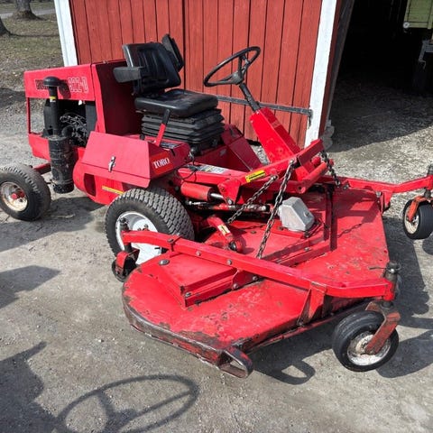 Begagnad gräsklippare, klippdäcket har rosthål men går maskinellt bra