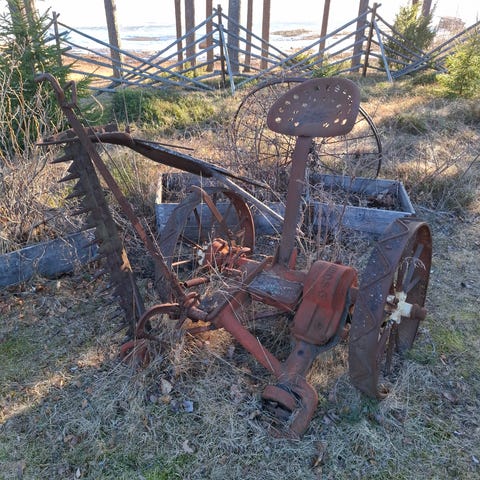 Gångtraktor och jordfräs i rostigt skick. Lämplig för den som vill renovera, använda som reservdelar eller till projekt där äldre jordbruksutrustning behövs. Säljs i befintligt skick enligt bilderna.