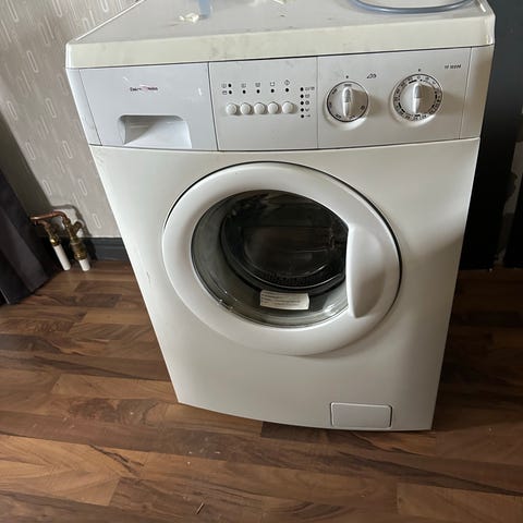 Siemens frontmatad tvättmaskin i vit färg. Maskinen har frontlucka med runt glasfönster och manuell panel med vred och knappar för val av program, temperatur och centrifugering. Passar för installation i tvättstuga, badrum eller annan tvättplats där det finns vatten- och avloppsanslutning samt eluttag. Lämplig för normal hushållstvätt av kläder, handdukar och textilier enligt angivna programinställningar. Tvättmaskinen fungerar felfritt.