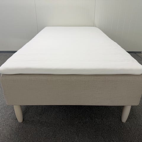 Jensen Supreme sängram 105x200, fast fjädring med klädsel 465 Light Grey. Nypris 26 600 kr (Sovabutiken). Passar som enkel- eller gästsäng i sovrum eller gästrum. Klädseln är avtagbar med dragkedja. Klädseln går att tvätta.