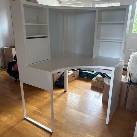 IKEA hörndatorbord med hyllor vit