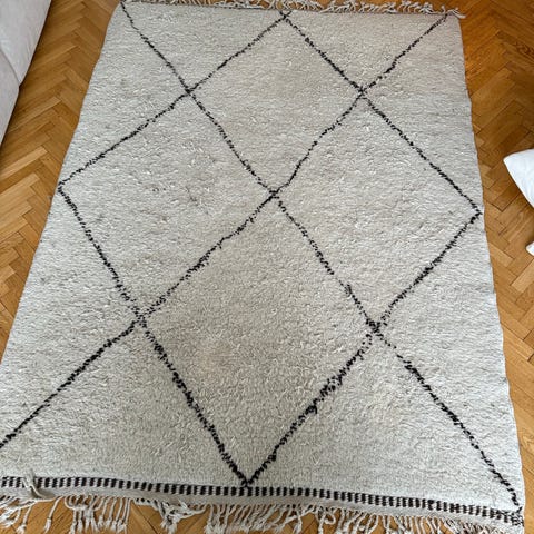 Nu säljer vi en fantastisk Beni Ouarain-matta som är handgjord i Marocko. Den här typen av matta vävs traditionellt av kvinnokooperativ i Atlasbergen och varje matta är helt unik.