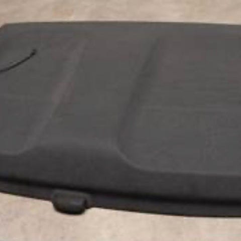 En felfri svart Cabriolet i vinyl med tryckknappar och plastfönster.