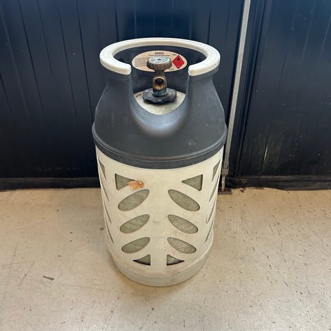 Gasolflaska i kompositmaterial. Flaskan har skyddande överdel med bärhandtag och ventil upptill. Passar för användning till exempelvis gasolgrill, campingkök eller andra gasolapparater som är anpassade för denna typ av flaska. Exakt volym och vikt framgår normalt av märkningen på flaskan.