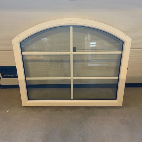 Öppningsbart överkantshängt inåtgående fönster i vit komposit. 1185x785 mm. 2-glas thermoglas.