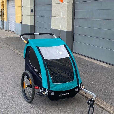Cykelvagnen görs enkelt om till barnvagn med snurrbart framhjul. Fungerar lika bra med ett barn i mitten som med två barn sida vid sida. Handtaget är justerbart med knäleder vilket gör att man lätt hittar en bekväm körställning.