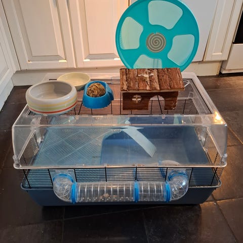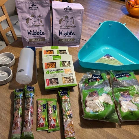 Säljer ett paket med ”hus”, soffa, transportbur (liten) och automatisk mat & vattendispenser