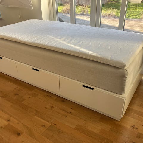 Sängen är byggd av köksskåp från Ikea. Ramsängen ingår. Perfekt för lilla sovrummet, gästrum/kontor