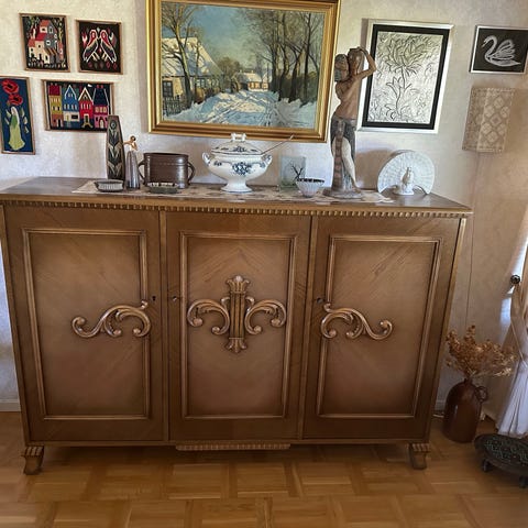 Stor vintagebyrå i trä och läder