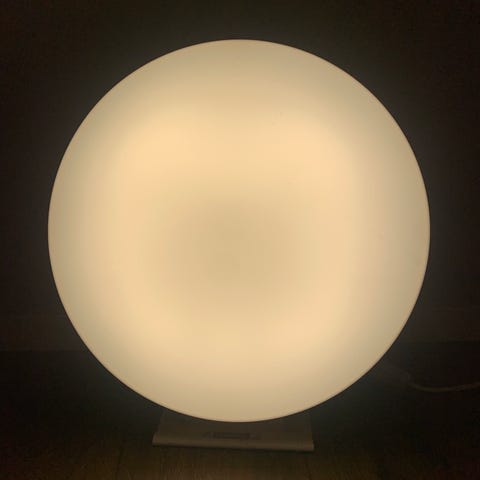 to use while living in Stockholm. Now I'm moving back to the states and don't want to bring it with me. I didn't end up using it that much so I imagine it has the vast majority of its 50,000 hours of lifespan still. I also have a clamp for it as pictured so it can be placed on a table end or something like that, and a connection that can go into a normal lamp to make that a red light.