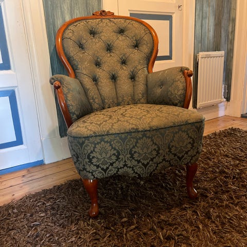 Fåtölj barockstil svart sammet vit träram