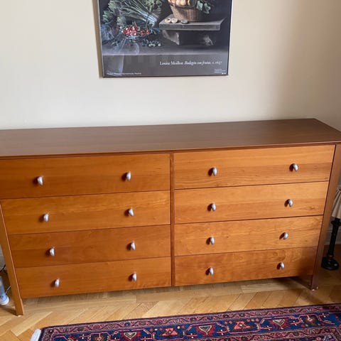 Klädbyrå, körsbär, bra skick, 1,76 m lång, 42 cm djup, 90 cm hög. 8 lådor