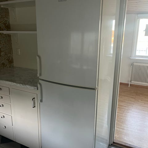 Frysdelen är placerad nedtill och har tre utdragbara lådor för överskådlig förvaring av frysta varor. På utsidan finns digital display för temperaturvisning. Skåpet är fristående och anpassat för inomhusbruk i kök eller liknande utrymme. Den som köper måste hämta kyl/frys på adressen, inget jag kan hjälpa till med.