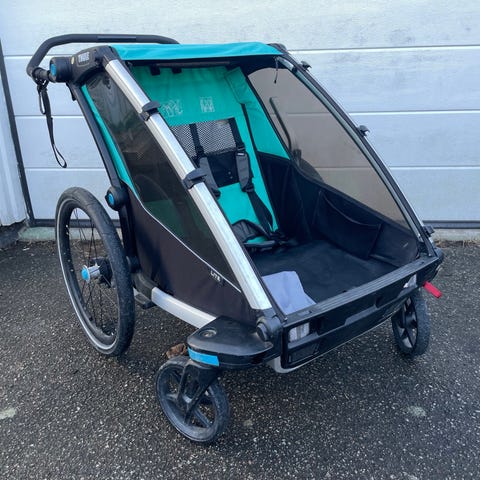 Säljer en svart Thule cykelvagn / dubbelvagn i mycket fint skick. Thules bästa modell med stötdämpare och handbroms.