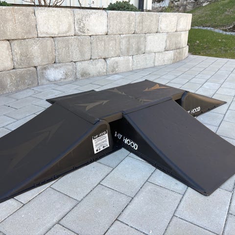 Körskenor ramp i aluminium med halkskyddad yta. Består av två separata skenor som kan användas för att köra upp till exempel trädgårdsmaskiner, rullstol , rullator eller barnvagn eller liknande på en högre nivå, som släp eller altan. Passar där en portabel och lättare ramp behövs.