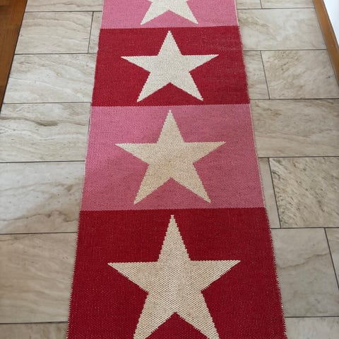 Pappelina matta med stjärnmönster. Mattan är brun med ljusa stjärnor. Tillverkad i plastväv som är lätt att hålla ren och lämpar sig för ytor där man vill ha en tålig och lättskött matta. Mattan är 70x 250 cm.
