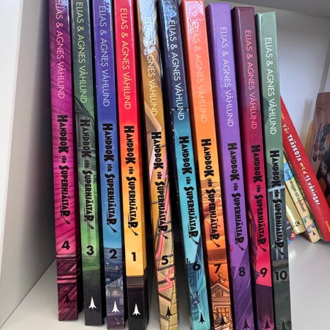 Två böcker från serien Handbok för Superhjältar. Del 1: Handboken och Del 9: En ny vän.
