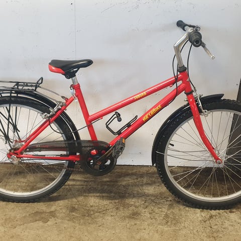 barncykel med 24" hjul. Cykeln har låg instegsram, pakethållare bak, stänkskärmar och fotbroms kombinerat med handbroms. Utrustad med reflexer för ökad synlighet. Passar barn som har vuxit ur mindre hjulstorlekar och behöver en cykel för vardagscykling till skola och fritidsaktiviteter.