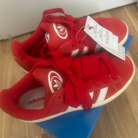 Adidas Campus sneakers i storlek 38. Modellen är låga med snörning och har grå ovandel med vita ränder och vit sula. Skorna har vadderad häl och plös för ökad komfort. Passar för vardagsbruk och fritid.