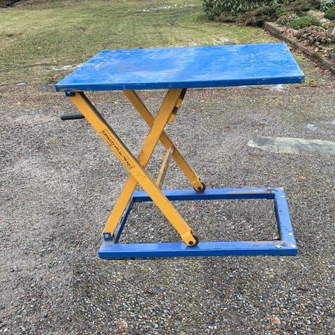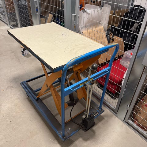 Luftdrivet hydrauliskt lyftbord. Ca 130×225cm.