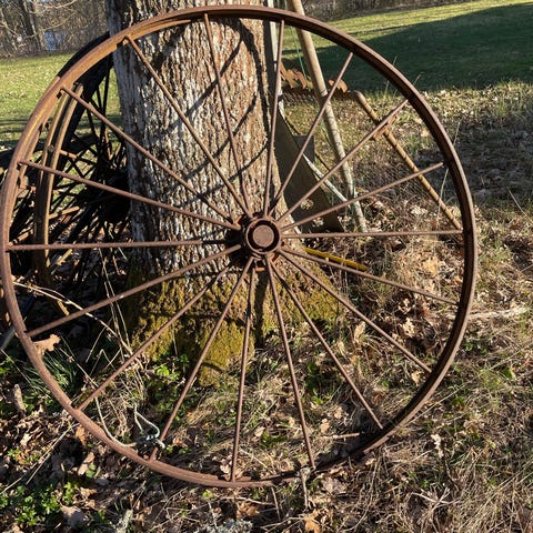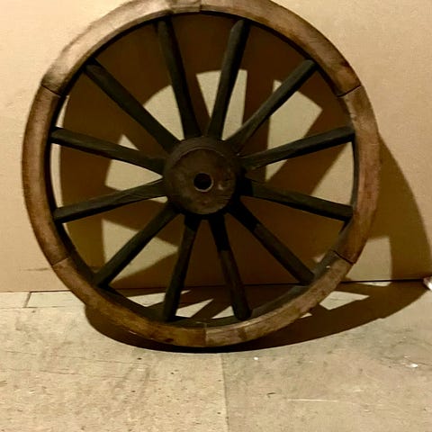 Äldre hjul vagnshjul allmoge lampa bar inredning
