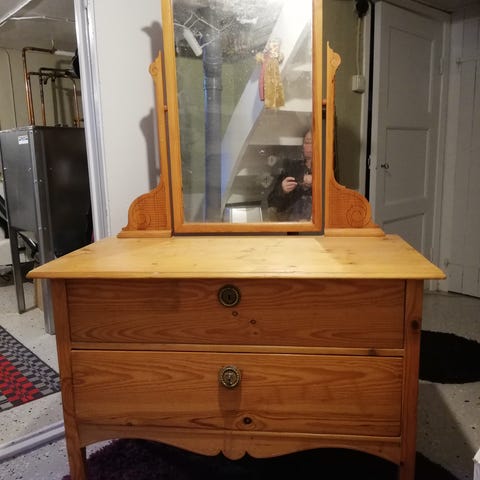 Lite mindre spegelbyrå i furu som jag tänkt måla , men det blev aldrig av så nu får nån annan ta över .