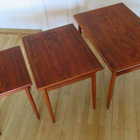 Ett fint Retro, Vintage Satsbord om 4 delar i Engelsk stil. 1900-tal. Troligtvis Mahogny. I ok skick. Ett par dmå nagg, men inget som syns nämnvärt, därav priset.