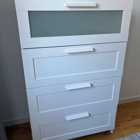 Sparsamt använd. Enstaka fläck i en av lådorna (se bild) men inget som kommer synas eller påverkar funktionen. Fint skick.