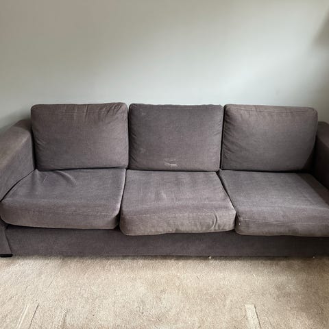 Soffan är väl omhändertagen och dynorna har puffats regelbundet för att bibehålla volym och spänst. Detta är den perfekta soffan för dig som vill ha hög kvalitet och snygg design till en bråkdel av nypriset.