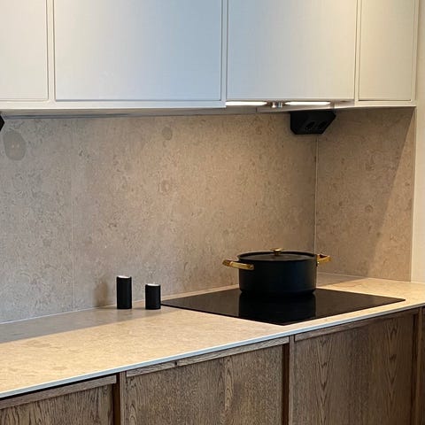 Inbyggd spisfläkt för montering under överskåp i kök. Fläkten är vit på undersidan med perforerat galler och har integrerad belysning. Utsug sker via rund kanalanslutning upptill. Elanslutning med stickkontakt. Passar för installation ovan spishäll eller spis i standardkök där man önskar en diskret köksfläkt integrerad i skåp.