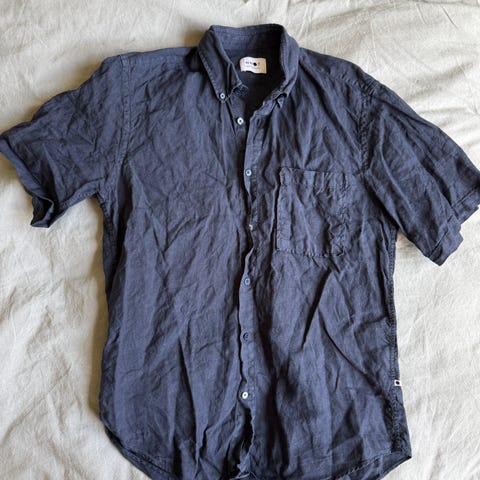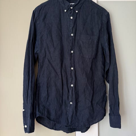 NN07 Karl Linnebyxor 100% Linen 31/32 (Nypris 1799kr). De har någon slags missfärgad tråd på låren. Syns på sisten bilden.