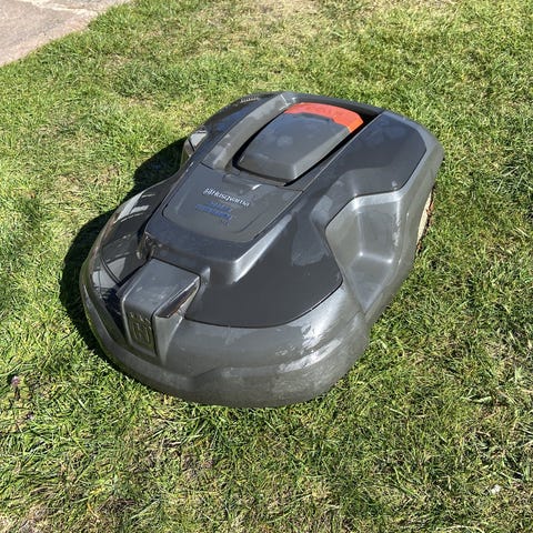 Detta är en begagnad robotklippare som klipper max 800 m2 innanför begränsningskabeln.