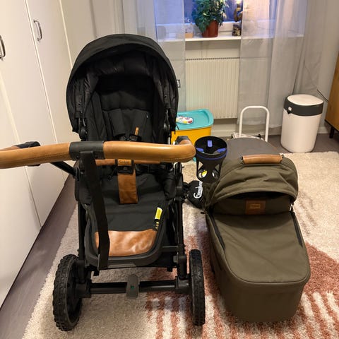 Myggnät(Emmaljunga original) och regnskydd(Tullsa) ingår.