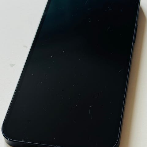 Apple iPhone 12 mobiltelefon med 64 GB lagringsutrymme. Modellen har dubbla kameror på baksidan och helskärmsdisplay på framsidan. Färg: vit. 🔋77%