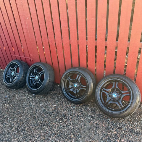 5 st Borbet fälgar med bultar. Halv dåliga däck men fina fälgar säljes.