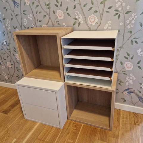 IKEA Trofast i furu med gråa lådor. I fint begagnat skick. Finns att hämta i Tyresö.